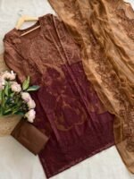 This semi-stitched heavy embroidery cotton top and bottom with chiffon dupatta Designed for ease and style, it comes semi-stitched so you can enjoy a ready-to-wear fit with minimal tailoring. Perfect for casual or festive occasions.