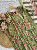 Unstitched Pakistani suit with cotton top and bottom, paired with a soft chiffon dupatta for an elegant finish.