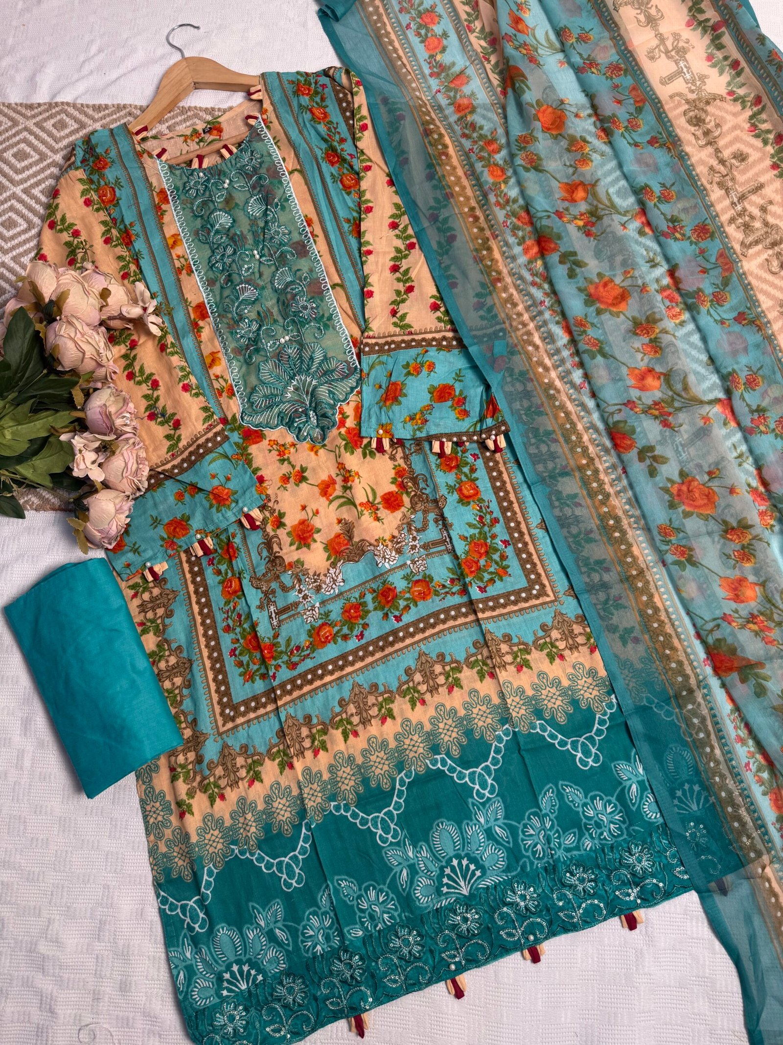 Floral Pattern Pakistani Ensemble