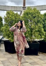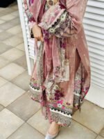Unstitched Pakistani suit with cotton top and bottom, paired with a soft chiffon dupatta for an elegant finish.