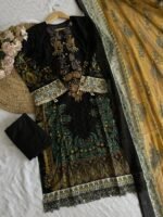 Unstitched Pakistani suit with cotton top and bottom, paired with a soft chiffon/cotton dupatta for an elegant finish.