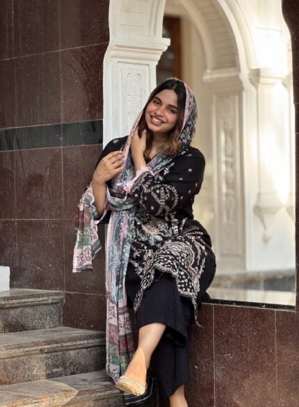 This semi-stitched hakoba print Pakistani suit features a cotton top and bottom, complemented by a lightweight chiffon dupatta. Designed for ease and style, it comes semi-stitched so you can enjoy a ready-to-wear fit with minimal tailoring. Perfect for casual or festive occasions.