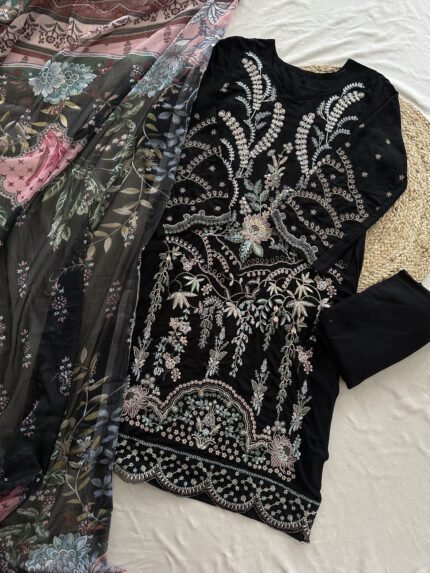 Semi Stitched Embriodered Pakistani Suit