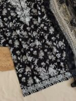 Unstitched Pakistani suit with cotton top and bottom, paired with a soft chiffon dupatta for an elegant finish.