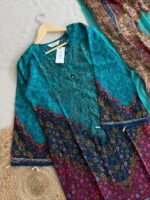 Readymade Pakistani cotton suit with chiffon dupatta.