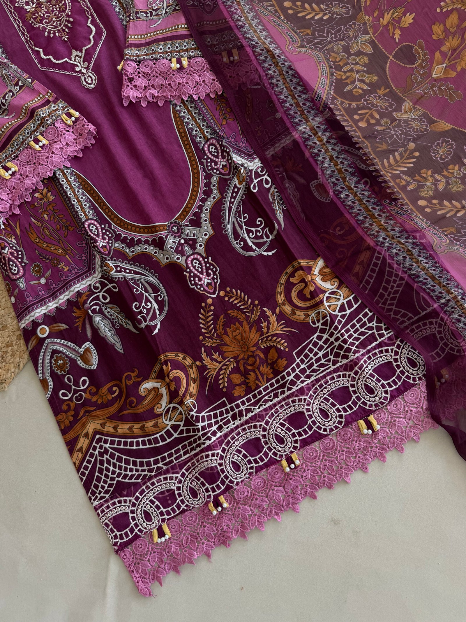 Readymade Pakistani cotton suit with chiffon dupatta.