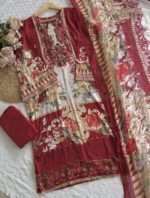 Readymade Pakistani cotton suit with chiffon dupatta.
