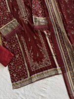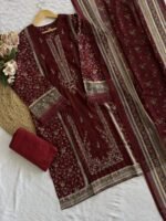 Stylish readymade Pakistani suit featuring a soft cotton top and bottom, paired with an elegant chiffon dupatta — perfect for casual wear and small occasions.