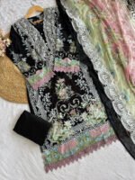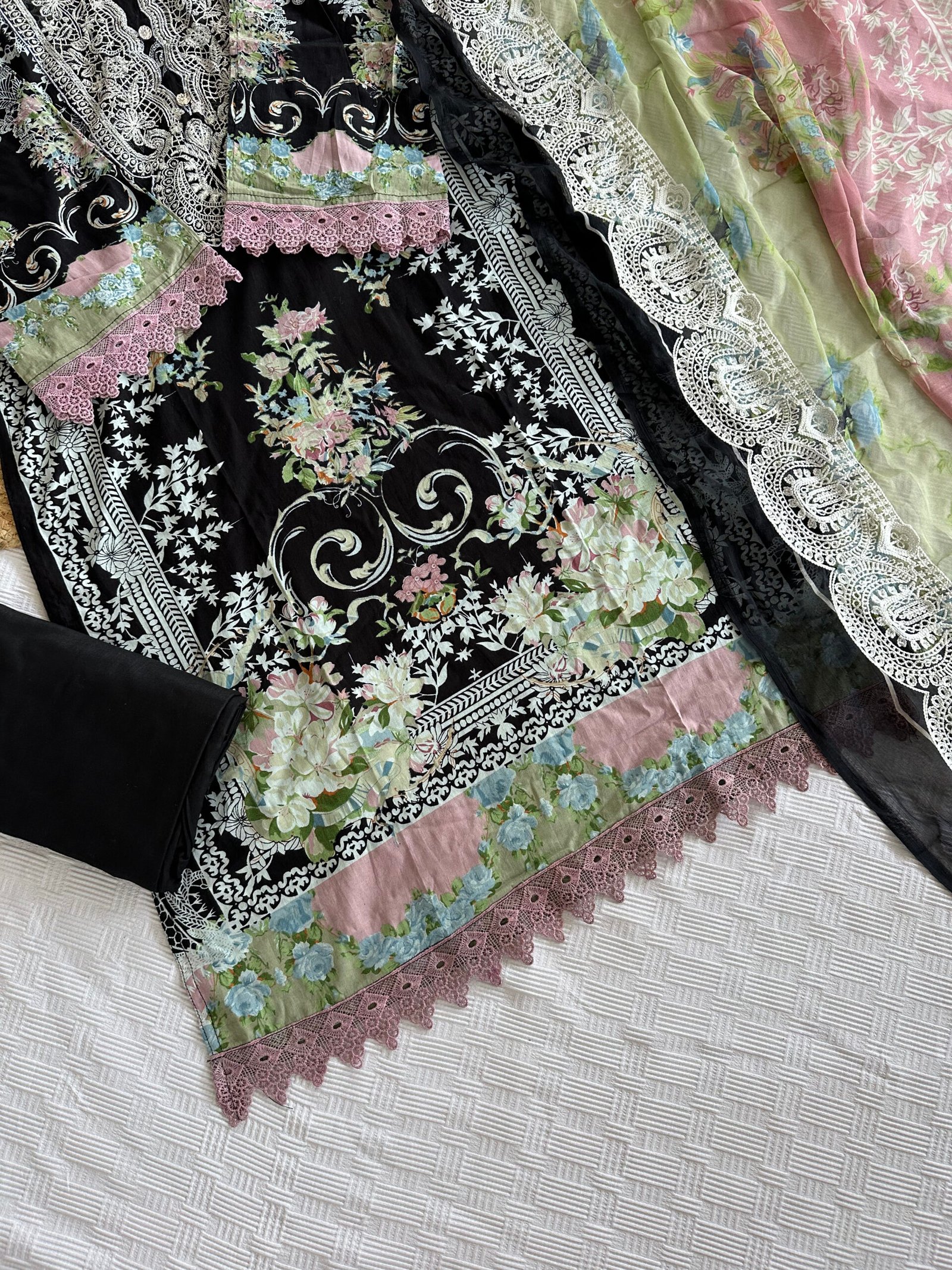 Readymade Pakistani cotton suit with chiffon dupatta.