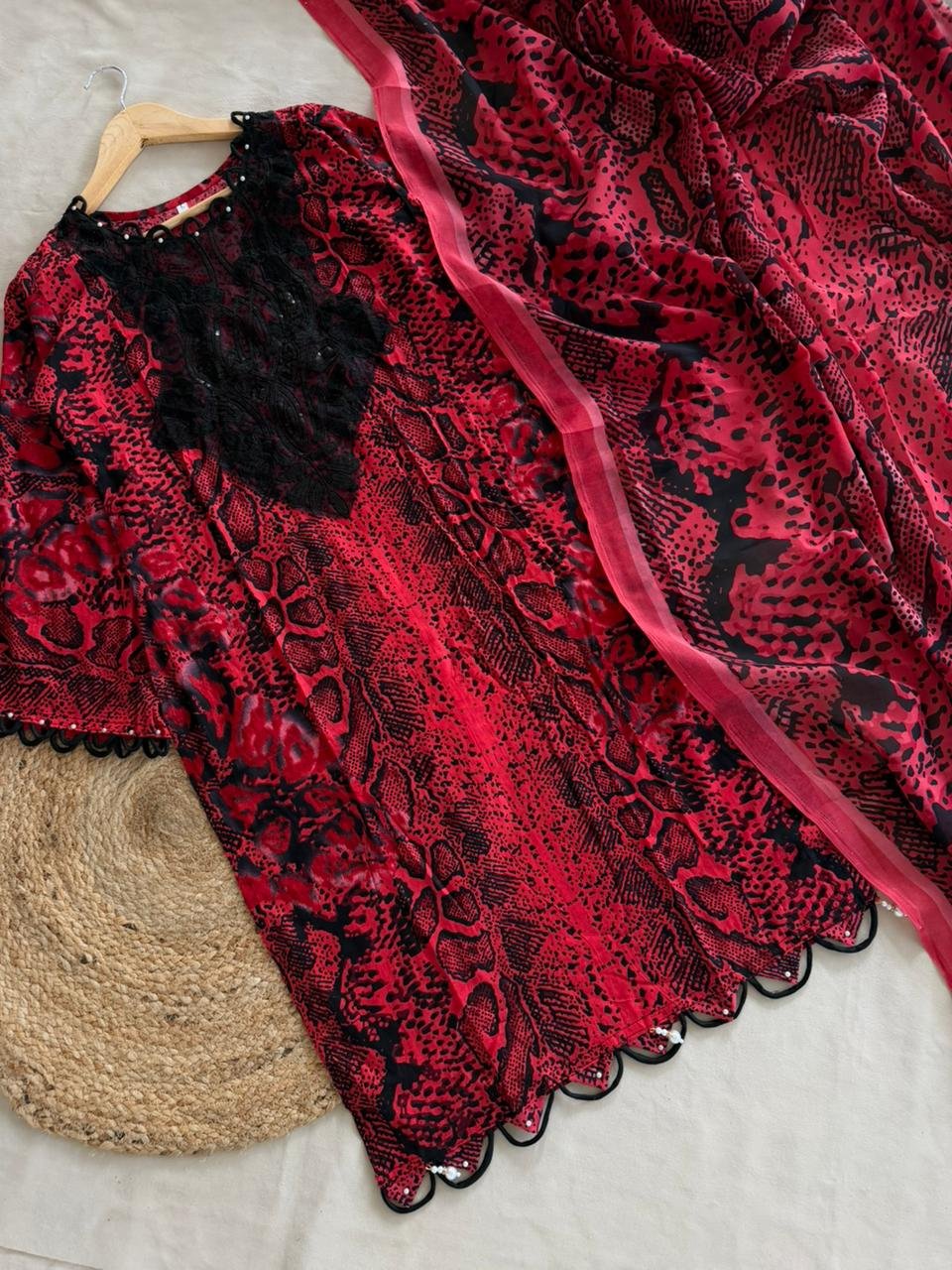 Ready made red and black printed suit