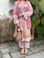 This set features a cotton top and bottom paired with a lightweight chiffon dupatta. Unstitched, it can be tailored to your preferred style.