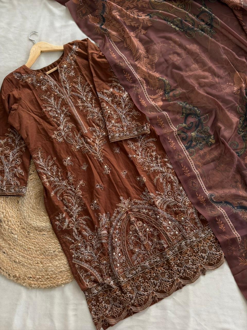 heavy embroider cotton top and bottom with cotton dupatta.